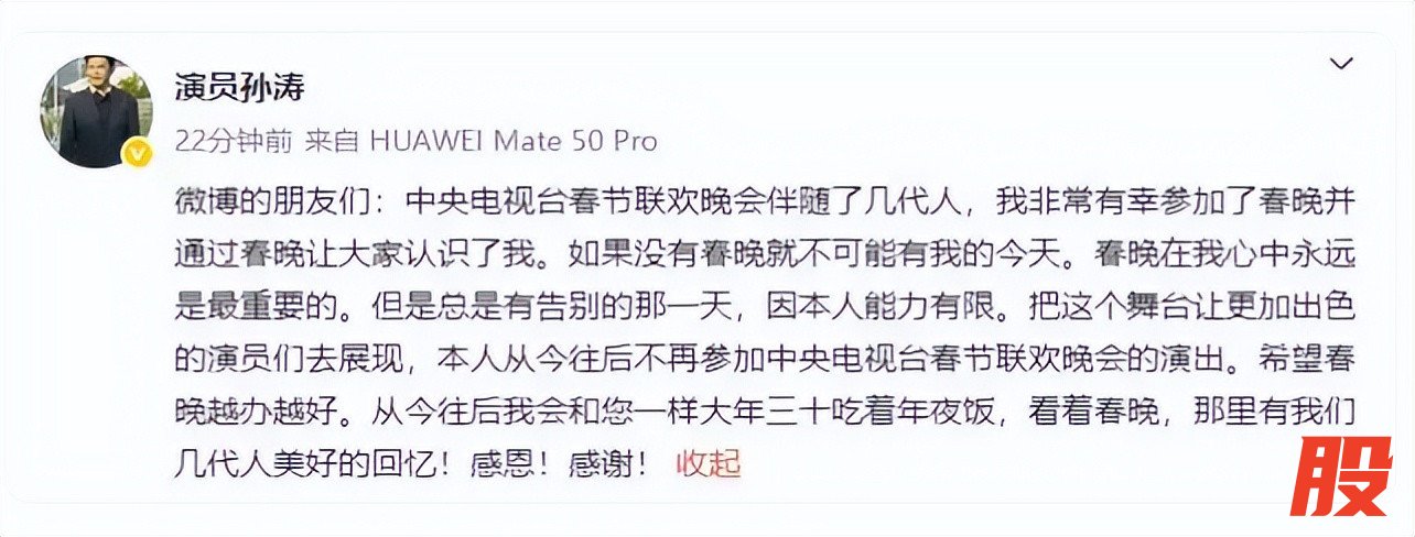 稳益配 孙涛宣布将不再参加央视春晚, 称个人能力有限
