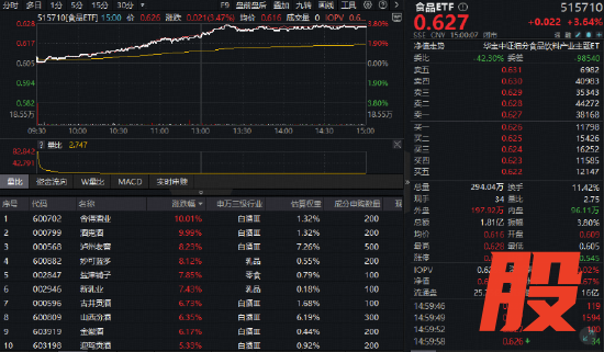 一、【吃喝板块暴力拉升,主力狂买超百亿元!食品ETF(515710)大涨3.64%,估值低位布局正当时?】