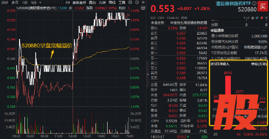值得关注的是,港股通创新药ETF(520880)早盘水下震荡区间溢价飙升,午后行情逆转仍高频溢价,显示买盘势力尤为强劲。作为100%布局创新药研发类公司的ETF,520880颇受“抄底”资金青睐,上周累获1.3亿元资金增仓。