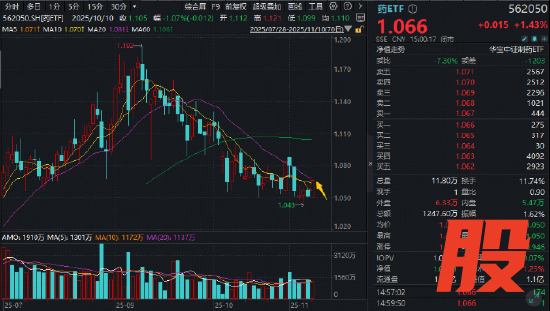 A股制药板块同步反弹,华东医药、特宝生物等创新药概念股领涨,片仔癀、云南白药等中药龙头涨逾2%助攻。场内唯一药ETF(562050)重仓创新药,兼顾中药,场内收涨1.43%,成功站上5日及10日线。